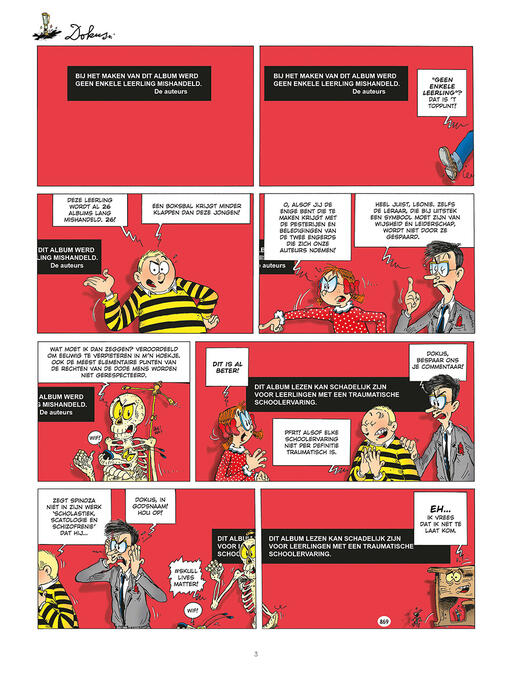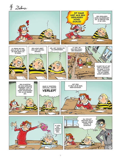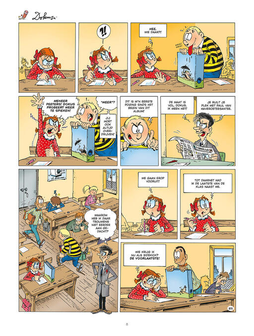 Dokus, al meer dan twintig jaar elke week in Zonneland! Dokus is een vaste waarde in het fonds van Le Lombard.Wist je dat... scenarist Zidrou lang zelf onderwijzer geweest is? Hij droomde van een slimme school waar kinderen eerst leren denken voor ze leren blokken. Een school die inspeelt op het echte leven met al zijn ups en downs. Onbegonnen werk... dan maar strips maken!