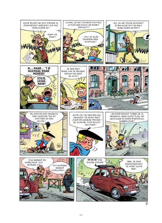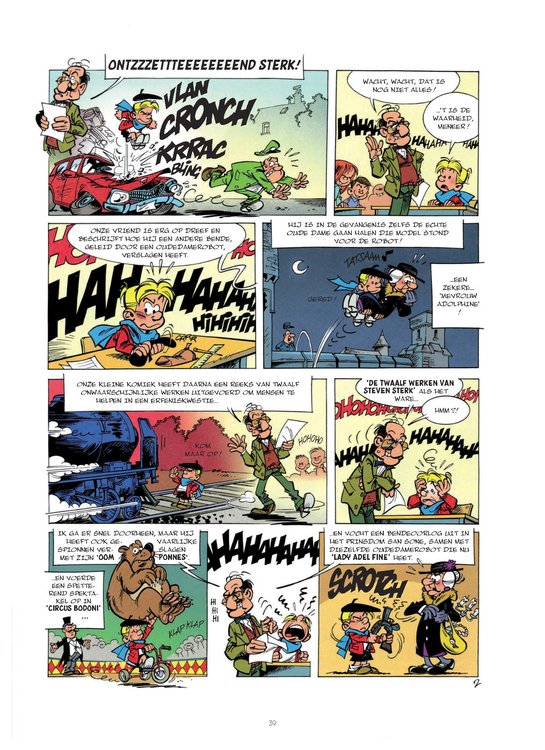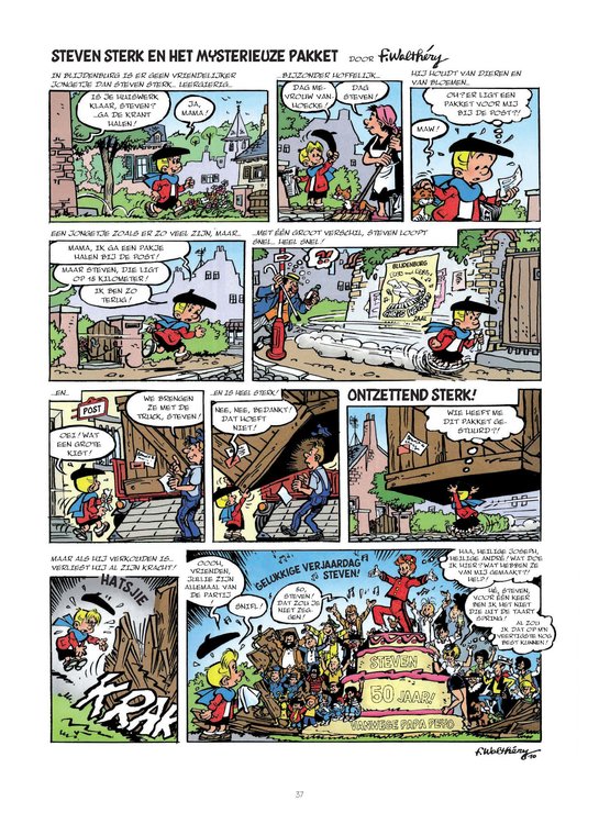 Steven Sterk lijkt een jongen zoals alle andere jongens van zijn leeftijd ... Maar schijn bedriegt. Steven is onvoorstelbaar sterk en iedereen die slechte bedoelingen heeft, krijgt er flink van langs. Tenminste ... als hij niet verkouden is, want dan verdwijnt zijn kracht als sneeuw voor de zon. Misschien draagt hij daarom altijd die blauwe wollen sjaal. Een van de grote klassiekers uit het stripverhaal, geschreven en getekend door Peyo, de geestelijke vader van de Smurfen en Johan en Pirrewiet. Deze prachtige hardcover bundelt drie verhalen en wordt ingeleid met een uitgebreid dossier boordevol weetjes en achtergrondinformatie.