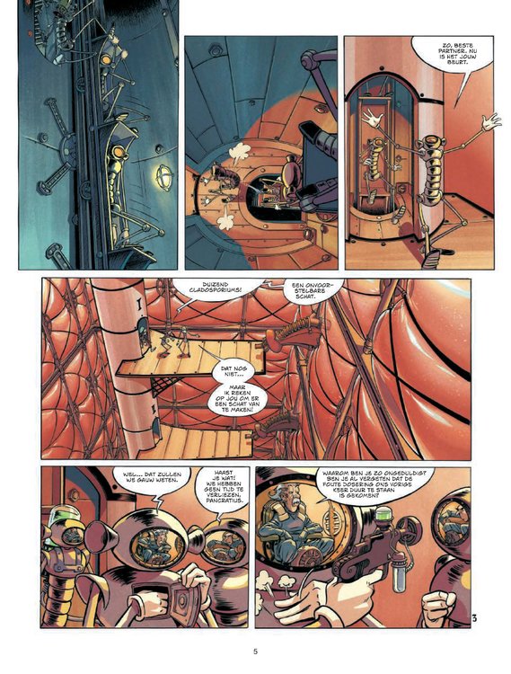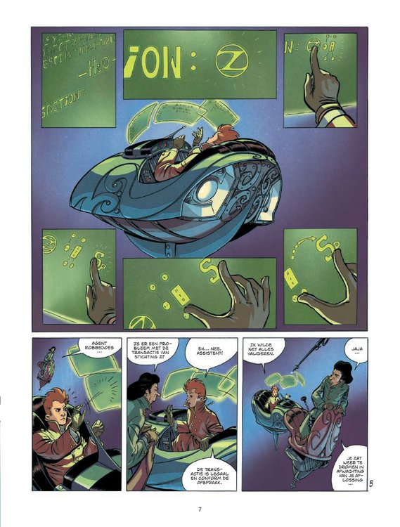 In het oneindige heelal valt een ruimteschip een goederentransport aan. Uit het tuig van de aanvaller komen drie reuzerobots tevoorschijn. Ze zijn bemand door drie personages die we maar al te goed kennen: de graaf van Rommelgem, Zwendel en Wiebeling. Na enkele handige proefjes van Pancratius met de vloeibare lading is Zwendel in zijn nopjes: ze hebben zomaar even een echte oceaan in hun bezit! Niet ver daarvandaan valideert ambtenaar Robbedoes, kleinzoon van de graaf, de transactie van het Fonds Z. Niemand weet dat de onbeduidende pennenlikker een groot onderzoek voert naar de gerespecteerde instelling. Een onderzoek dat wordt doorkruist door IJzerlijm die is toegetreden tot de rebellen en ondergronds gaat. Als Robbedoes en IJzerlijm gevat worden en achterna worden gezeten door moordrobots, redt niemand minder dan Kwabbernoot hun hachje! Een futuristische Robbedoes door ... met invloeden uit de steampunk en de art nouveau. Het universum van Robbedoes en Kwabbernoot vanuit een totaal andere invalshoek. Fabrice Lebeault en Denis-Pierre Filippi: het duo van het Vrije Vlucht-tweeluik De boeman.