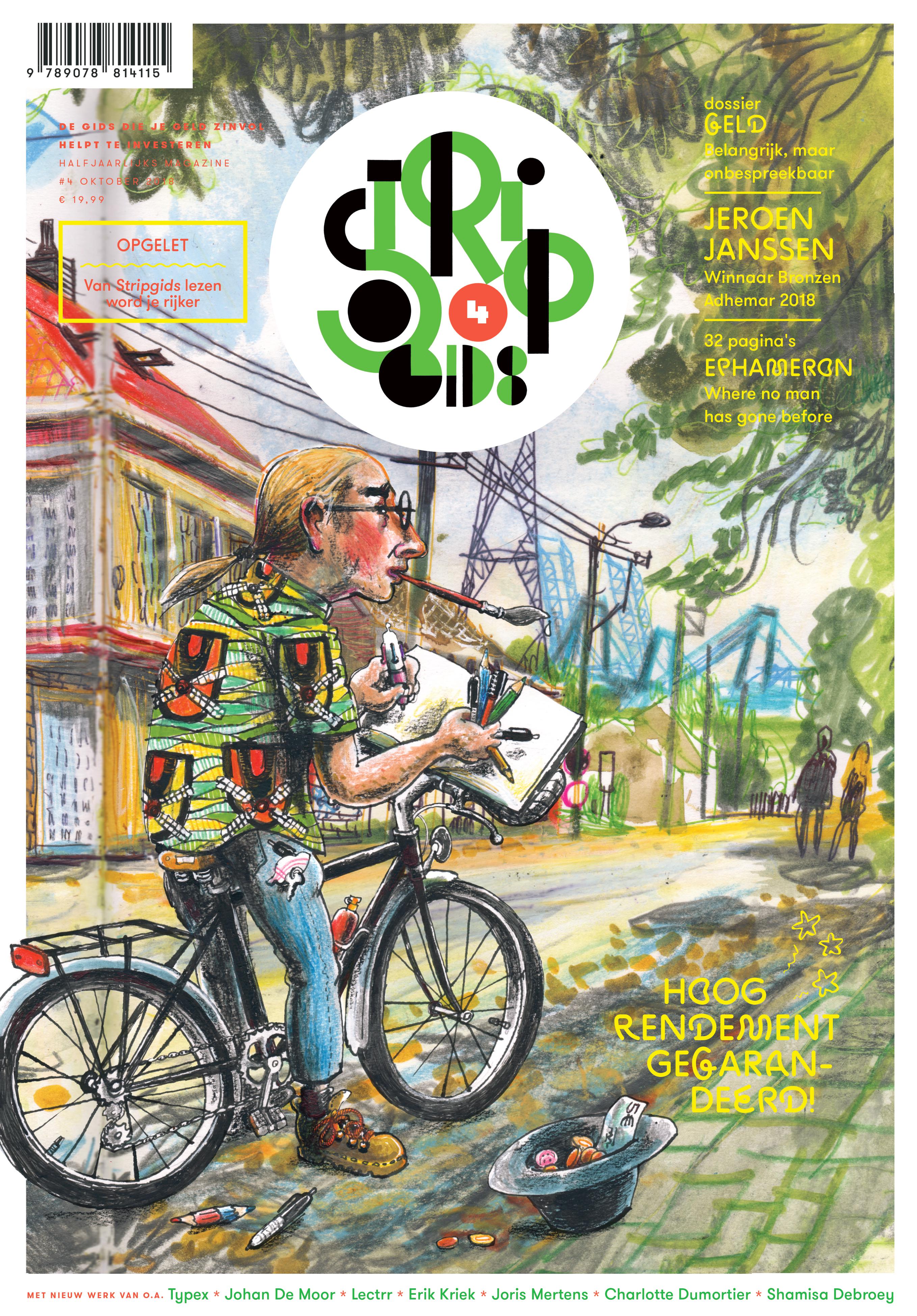 De jongste Stripgids biedt alweer een duizelingwekkende en meeslepende trip doorheen de wereld van de strip. Met voorpublicaties van werk van o.a. Olivier Schrauwen, Erik Kriek, Typex en Joris Mertens. En met messcherpe artikels, onder meer over hét hot topic van het moment: geld. Want geld blijkt belangrijker dan ooit geworden. Horen strips (en hun auteurs) stilaan eerder thuis in Bokrijk (zoals een auteur het stelt), en zo ja: hoe komt dat dan? En met uiteraard ook ruim baan voor het werk van de Bronzen Adhemar 2018-winnaar Jeroen Janssen, die eind november een grote overzichtstentoonstelling krijgt in Cultuurhuis de Warande (Turnhout). Het katern is dit keer gewijd aan de veelzijdige grafisch kunstenares Ephameron en haar festival, Grafixx. En daarnaast is er nog véél meer, o.a. over Superman die 80 wordt, censuur in strips, een achteruit- en vooruitblik naar Angoulême, erfgoed, enz. Samengevat: wie helemaal mee wil zijn met strips uit binnen- en buitenland, leest Stripgids!