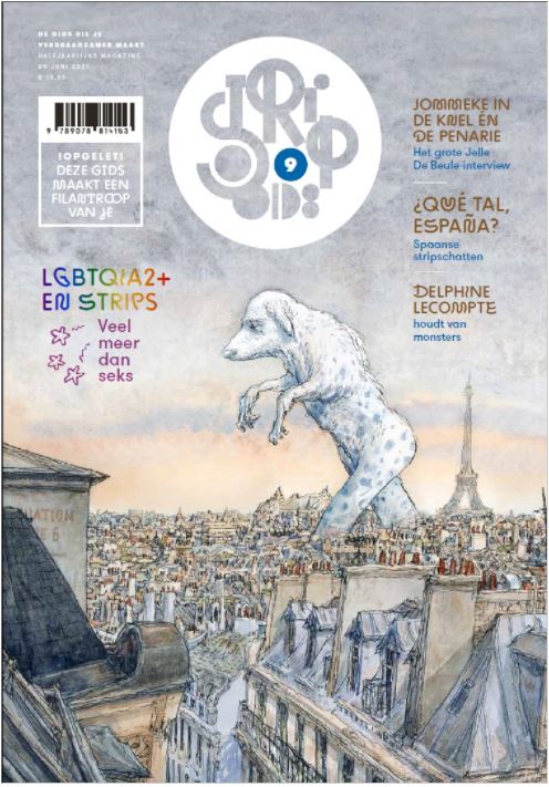 : De Crecy - Typex - Delphine Lecompte - Karel Anthierens - Posy Simmonds - Fien Jorissen - Baru - Pierre Bailly - Philippe Foerster - Margreet de Heer LGBTQIA2+ en strips: voor elkaar gemaakt Strips zijn een spiegel van de tijd waarin ze gemaakt worden. Het kan dan ook niet verwonderen dat strips over, van en met LGBTQIA2+-auteurs en thema’s steeds zichtbaarder en talrijker worden, ook in de Lage Landen. Het in binnen- en buitenland gewaardeerde literaire tijdschrift Stripgids laat zijn licht schijnen over de zeggingskracht en de relevantie van een medium – strips dus – voor een welbepaalde doelgroep. Het LGBTQIA2+-thema gaat in essentie over diversiteit. In dit dossier stelt Stripgids de vraag hoe met dit hele spectrum van geaardheid, identiteit, liefde en verlangen wordt omgegaan in strips. Strips zijn definitief uit de kast. Je kan het thema terugvinden in zowat alle stripgenres, van pornografische manga tot autobiografische romans. Een meerstemmig dossier, met strips en getuigenissen uit eigen land, Denemarken, Frankrijk, Libanon, Nederland, Spanje, Turkije en het Verenigd Koninkrijk. Na de coronacover van de grensverleggende Britse stripmaker Dave McKean voor Stripgids #7 en de Amerikaan Chris Ware voor Stripgids #8 was nu de Fransman Nicolas de Crécy bereid een dubbele cover te maken. Andermaal pleit het voor het “mooiste stripblad van Europa” (dixit de Volkskrant) dat ook deze wereldberoemde stripmaker zijn naam met Stripgids wil verbinden. Stripgids #9 presenteert: • In het editoriaal vat de Nederlandse stripmaker Typex de pandemie met een aantal… eilandmoppen. • Er is grote interesse in outsiderkunst, daarvan getuigen het succes van tentoonstellingen in Museum Dr. Guislain in Gent en Museum Het Dolhuys in Haarlem. Maar bestaat er ook zoiets als ‘outsider comics’? Stripgids vroeg het aan Erwin Dejasse, kunsthistoricus, docent en curator. • Tussen 1965 en 1995 was Karel Anthierens (°1935) een van de invloedrijkste personen in de Nederlandstalige pers. Hij verwierf faam als hoofdredacteur van verschillende tijdschriften en kranten, van Humo tot Panorama / De Post en Het Volk. Achter de schermen organiseerde hij de boel, trok hij trok nieuw talent aan en begeleidde hen: journalisten, columnisten maar ook cartoonisten leerden van hem het metier. Om die cartoonisten meer zichtbaarheid te geven, richtte hij na zijn pensioen Press Cartoon Belgium op, dat elk jaar de beste cartoon uit de Belgische pers bekroont. Een interview over de vrije meningsuiting, cartoons, humor en strips. • De eminente Vlaamse dichteres Delphine Lecompte ontdekte de Nederlandse taal via stripverhalen. Ze heeft een boon voor monsters, vertelt ze in de rubriek De strips van. • Na het dossier over de Zuid-Afrikaanse stripscene in Stripgids #8 zoomen we dit keer in op de zinderende stripsector in Spanje. Stripmakers hebben daar “het juk van de industriële productie” afgeworpen. Verder in dit nummer: • In de tweede aflevering van ‘Ter illustratie’, stellen we het werk van Fien Jorissen voor. Haar werk prijkte al op de cover van The New York Times en The New Yorker. Hoe heeft ze het al zover geschopt? • De Britse stripmaakster Posy Simmonds heeft het in de rubriek Volg de gids over haar favoriete boeken en bezigheden. Zoals daar zijn: Madame Bovary van Flaubert, en tapdansen. • Hervé Barulea, Baru, is een Europese stripveteraan. “Elk beeld moet een uitnodiging zijn om erin te stappen”, meent hij. We brengen een groot portret van zijn leven en werk. • Naast veteranen is het een en al jong talent troef in dit nummer. In samenwerking met het online digitale tijdschrift Pulp deLuxe stellen we de winnares van de Plastieken Plunk 2021 voor. Die prijs bekroont de beste kortstrip, en gaat naar Gerlinde De Ryck. Ook introduceren we het werk van de jonge Nederlands-Duitse stripmaker Joris Bas Backer. • In Rubriek Techniek hebben we het dit keer over… borduren. Jawel, er zijn stripmakers die deze techniek gebruiken. U raadt het: alles begon met het beroemde 11e-eeuwse tapijt van Bayeux. • Toegegeven, we hebben een boon voor striperfgoed. In de rubriek De Oertijd stellen we het archief van Gerrit de Jager voor. En in onze thuisbasis Turnhout vond recent een bijzondere en tot de verbeelding sprekende reddingsoperatie plaats: de met stripfiguren versierde muren van de voormalige drukkerij Proost werden van de sloop gered. • Stripprofessor Sébastien Conard vraagt zich af wat er gebeurt als je álle stripregels op losse schroeven zet? The end of comics as we know it? • Naar aanleiding van het recente Jommeke in de knel én de penarie van Jelle De Beule en Thijs De Cloedt interviewt Stripgids scenarist De Beule. “Ik heb in elk geval niet het gevoel dat ik misogyn of racistisch ben geworden door Jommekes te lezen”, aldus De Beule. • We brengen ook uitgebreid hulde aan de founding father van Stripgids, Jan Smet. Enerzijds met een essay over zijn levenswerk over censuur in/van de strip, het recent verschenen Duizend bommen en castraten. En anderzijds met een portret van Jan, met getuigenissen van onder meer Merho, Hec Leemans, Toon Horsten en Noël Slangen. • ... en nog veel meer lekkers! De volledige inhoud van Stripgids 9 vindt u hier. Vraagt u zich af wanneer uw nummer in de bus valt? Nog héél even geduld. We hebben moeten wachten op een bijzonder extraatje… U zal wel zien wat dat is.