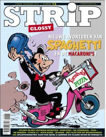 StripGlossy 13 staat in het teken van stripicoon Dino Attanasio met gloednieuwe verhalen van Spaghetti, De Macaroni’s, Johnny Goodbye en veel, heel veel andere strips van: Ger Apeldoorn, Tim Artz, Robbert Damen, Vick Debergh, Jan van Die, Kim Duchateau, Evert Geradts, René Goscinny, Rutger Gret, Frans Hasselaar, Margreet de Heer, Fred de Heij, Claudia van Hellenberg Hubar (inkleuring), Tamara Prins – Van ’t Hof (inkleuring), Dimitri Jansma, Daan Jippes, Frits Jonker (lettering), Hanco Kolk, Alex van Koten, Robert van der Kroft, Apriyadi Kusbiantoro, Karolina en Hans Lijklema, Martin Lodewijk, Alejandra Lunik, Nicolas Mahler, Ed en Víctor Malagrino, Dick Matena, Jesse van Muylwijck, Michiel Offerman, Diego Parés, Josse Pietersma, Wilbert Plijnaar, Stef de Reuver (inkleuring), Willem Ritstier, Schwantz, Peter de Smet, Dennis Spaans, Ruud Straatman, Meinte Strikwerda, Marten Toonder, Gerben Valkema (inkleuring), Peter de Wit, Roelof Wijtsma en Nile Zegg.