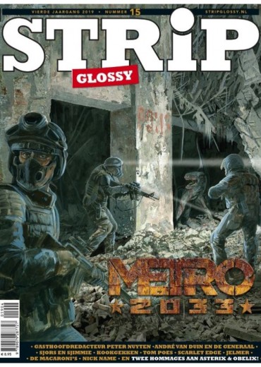 Gasthoofdredacteur van deze StripGlossy is Peter Nuyten. Hij verstripte de Russische bestseller Metro 2033. Nuyten: Een sinister epos waarin het allemaal draait om de zin van alles en hoe te moeten overleven in een voortdurende dreiging van extremisten, xenofobische terreur en monsterlijke wezens. Verschrikkingen zijn zowel psychisch als fysiek en een eenvoudig tochtje door een tunnel van het ene platform naar het andere kan de geest volledig uit elkaar scheuren, zoniet een reiziger doden. Voor mensen met claustrofobie geen aanrader. Verder in deze glossy twee gloednieuwe series: Scarlet Edge, een rollercoaster met aardbevingen, explosies en rondvliegende kogels, én De Macaroni’s, een hilarische strip over voetbal en de maffia. En wat vinden komiek André van Duin en chefkoks Danny Jansen, Francis Kuijk en Rudolph van Veen eigenlijk van strips? Lees deze StripGlossy en je weet het.