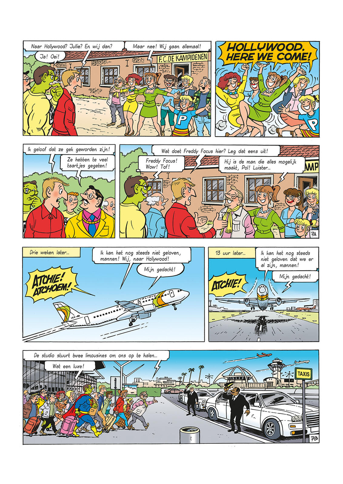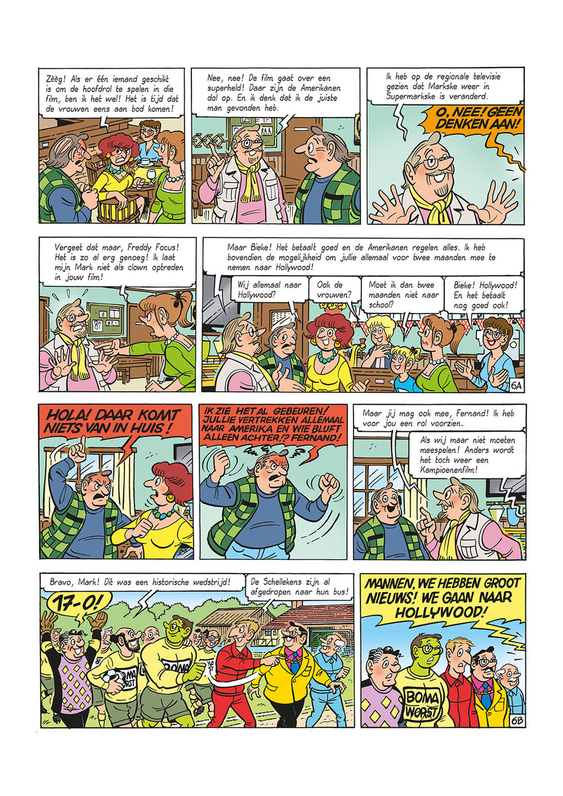 Son docteur est désespéré car il ne trouve pas la cause de cette nouvelle allergie. Mais les Kampioenen sont ravis d'avoir un joueur aux pouvoirs extraordinaires. Puis Freddy Focus apparaît. Il travaille sur un nouveau film pour Hollywood. Supermarkske serait un acteur idéal pour le rôle principal. Une proposition que Bieke rejette immédiatement. Mais lorsqu'il apparaît que tous les Kampioenen peuvent partir avec eux à Hollywood, elle change d'avis. À leur arrivée, cependant, le rêve hollywoodien se brise rapidement...