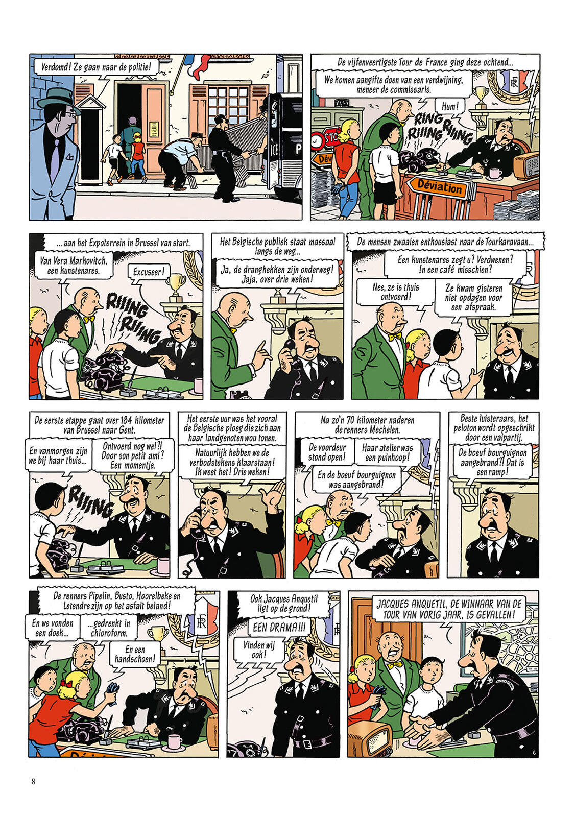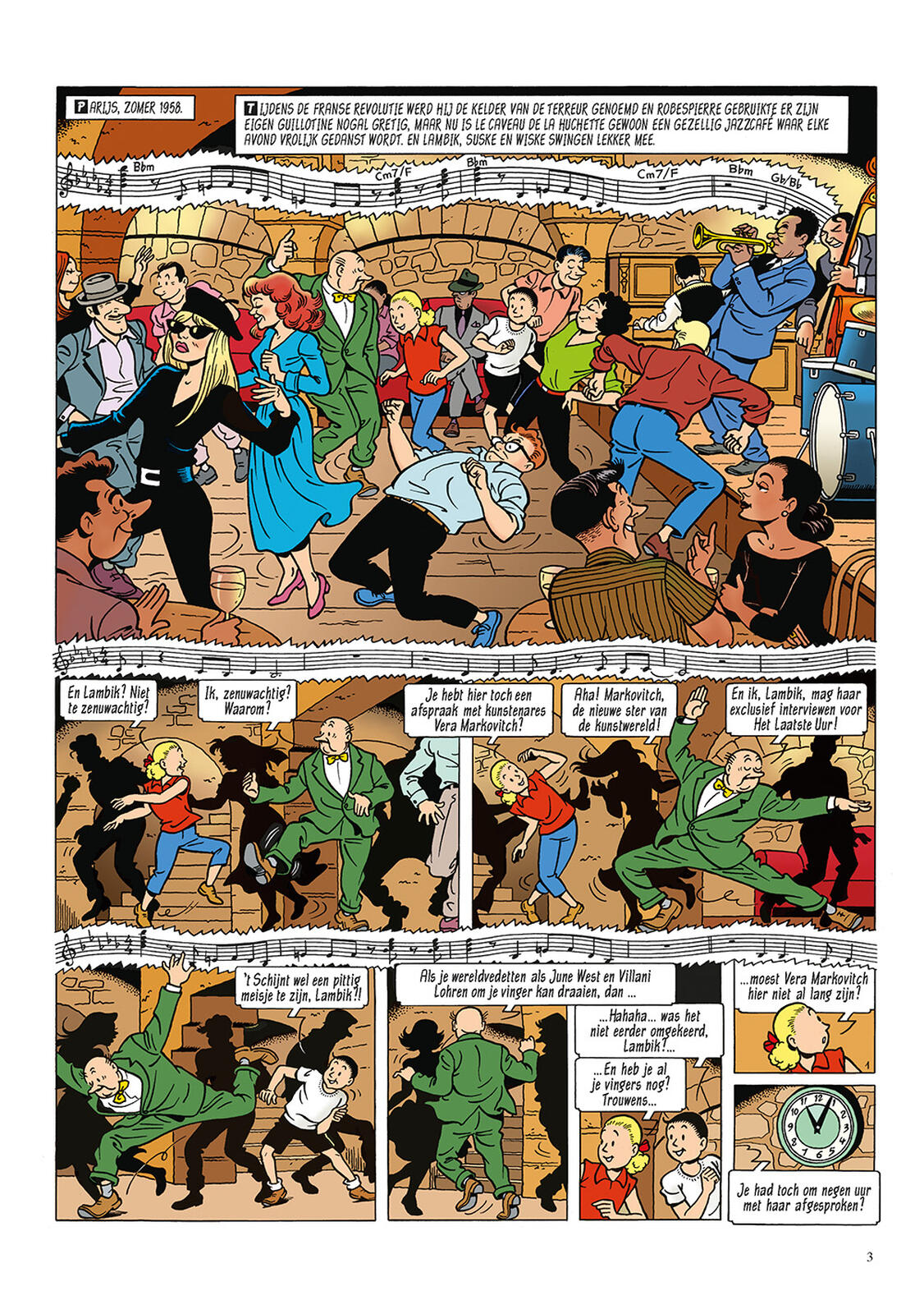 Paris, été 1958. Montmartre ! Avec son majestueux Sacré-Cœur, sa place des artistes Place du Tertre et ses terrasses conviviales ! Mais Montmartre a aussi un côté sombre... Lorsque Vera Markovitch, une étoile montante du monde de l'art, ne se présente pas à son interview avec Lambik, il se rend avec Suske et Wiske à son atelier. Vera n'est pas chez elle et il semble qu'elle soit partie précipitamment. Ou a-t-elle été kidnappée ? Suske, Wiske et Lambik commencent leur propre enquête, car ils ne reçoivent pas beaucoup d'aide de la police. Celle-ci a d'autres soucis : le Tour de France arrive à Paris ! D'ailleurs, tout le monde n'est pas aussi ravi de la recherche de nos amis. Au contraire ! Les stilettos sont déployés, les Colts 45 sont chargés...