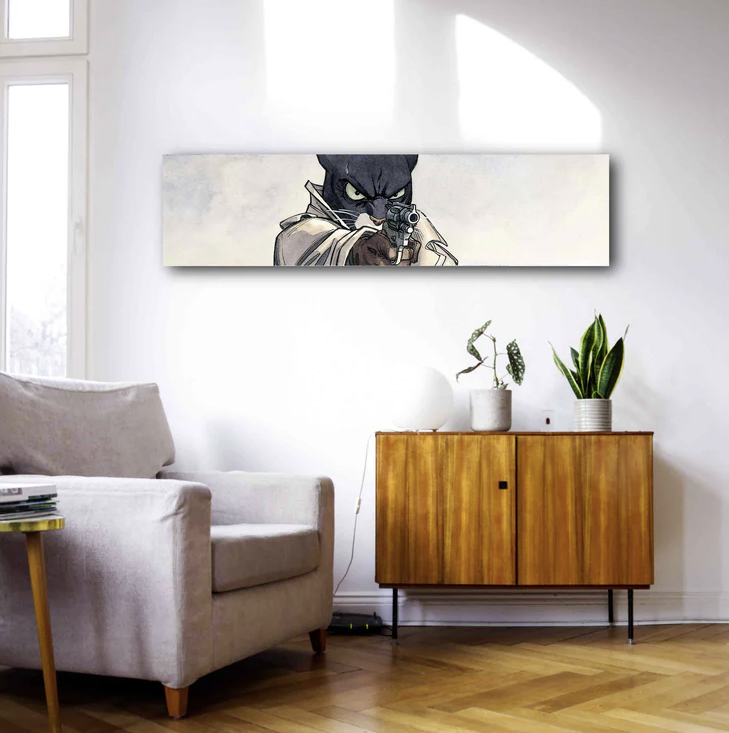 Œuvre de Juanjo Guarnido, une peinture d'ART en toile de polycoton Premium de 350 g/m² de qualité supérieure, montée sur un cadre en bois et équipée d'un crochet de suspension.