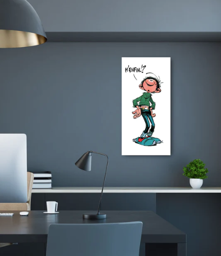 Dessin d'André Franquin, une peinture de qualité FINE ART sur une toile en polycoton premium de 350 g/m2, montée sur un châssis en bois et équipée d'un crochet de suspension.