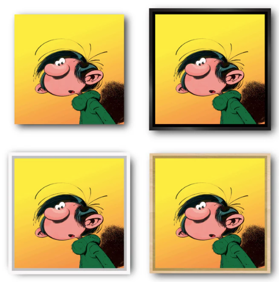 Nos caisses américaines en profil "L" sont fabriquées à la main en France avec du bois massif. Ces cadres offrent une esthétique élégante sans détourner l'attention de l'œuvre. Ils sont disponibles dans différentes finitions pour s'harmoniser avec l'univers des bandes dessinées.