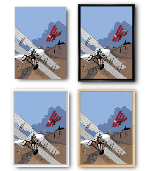 Nos caisses américaines en profil "L" sont fabriquées à la main en France avec du bois massif. Ces cadres offrent une esthétique élégante sans détourner l'attention de l'œuvre. Ils sont disponibles dans différentes finitions pour s'harmoniser avec l'univers des bandes dessinées.