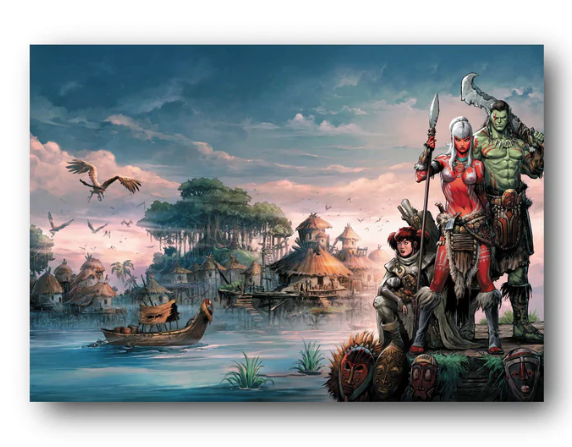 Dessin de C,Arleston et Ma Yi (Elfes Vol 5) Le monde d'Aquilon créé par J-L Istin et N Jarry, Tableau de qualité FINE ART sur toile de polycoton Premium de 350 g/m2, monté sur châssis bois et accompagné d'un crochet de suspension.
