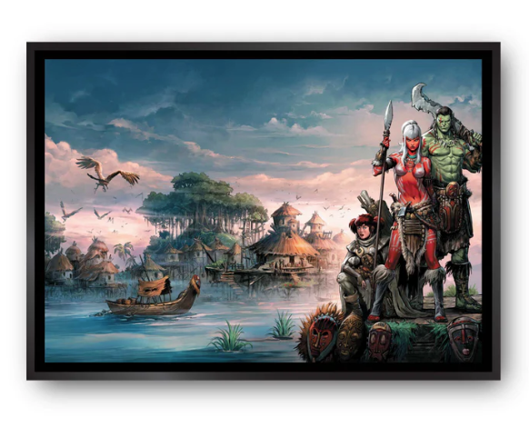 Dessin de C,Arleston et Ma Yi (Elfes Vol 5) Le monde d'Aquilon créé par J-L Istin et N Jarry, Tableau de qualité FINE ART sur toile de polycoton Premium de 350 g/m2, monté sur châssis bois et accompagné d'un crochet de suspension.