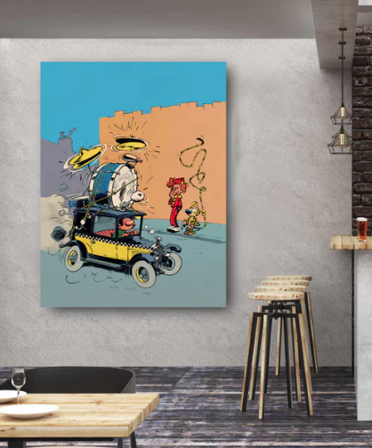 Dessin d'André Franquin, une peinture de qualité FINE ART sur une toile en polycoton premium de 350 g/m2, montée sur un châssis en bois et équipée d'un crochet de suspension.