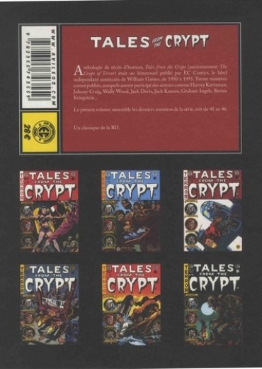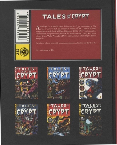 Anthologie de récits d'horreur, Tales from the crypt (anciennement The Crypt of Terror) était un bi-mensuel publié par EC Comics, le label indépendant américain de William Gaines, de 1950 à 1955. Trente numéros seront publiés,auxquels auront participé des auteurs comme Harvey Kurtzman, Johnny Craig, Wally Wood, Jack Davis, Jack Kamen, Graham Ingels, Bernie Kriegstein... Le présent volume rassemble les derniers numéros de la série, soit du 41 au 46. Un classique de la BD.