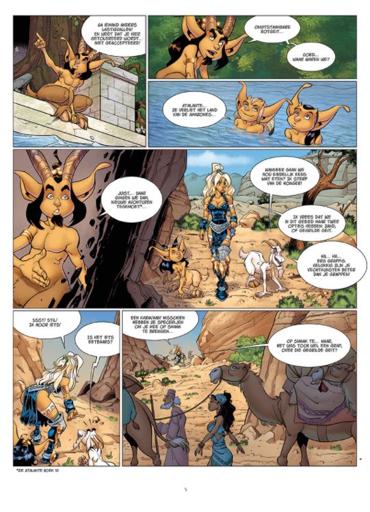 MET EXTRA GRATIS A3 KUNSTDRUK VOOR DE EERSTE BESTELLERS Een nieuwe cyclus begint. De saga van Atalante gaat verder, epischer en mythischer dan ooit! Teleurgesteld door de Amazones, besluit Atalante om terug te keren naar het land van haar jeugd: het magische woud van berg Pilion. Maar de reis is lang en ze moet de zee oversteken. Onderweg ontmoet ze een karavaan van handelaren. Ze zijn onderweg naar Troje waar binnenkort de Spelen worden gehouden. En Troje ligt vlakbij de zee... En met de Spelen valt er geld te verdienen om de overtocht te kunnen betalen... Atalante is een mythologische avonturenreeks van topauteur Crisse. Lees ook de verhalen uit Atalantes jeugd in Atalante Odyssee