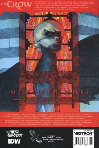 On raconte que lorsque quelqu'un meurt, un corbeau emporte son âme dans l'au -delà. Mais lorsque des choses trop horribles se sont passées, l'emporte en elle une immense tristesse. Alors quelquefois, seulement quelquefois, le corbeau peut faire revenir cette âme, pour que le bien reprenne ses droits sur le mal. Rome. David, enfant de choeurs, est tué avec sa petite amie lors d'un attentat qui a meurtri la ville et bouleversé l'Italie. Ramené parmi les vivants par le corbeau, David va se lancer dans une bengeance sanglante contre la barbarie tout en essayant de reconstituer le fil des évènements tragiques qui ont conduit tant d'innocents à connaître une mort atroce... Entièrement réalisé par des artistes et auteurs italiens apportant leur sensibilité européenne à l'univers sombre créé par James O'Barr, cet album contient un récit complet et plusieurs histoires courtes développant le mythe de la façon originale et inventive.