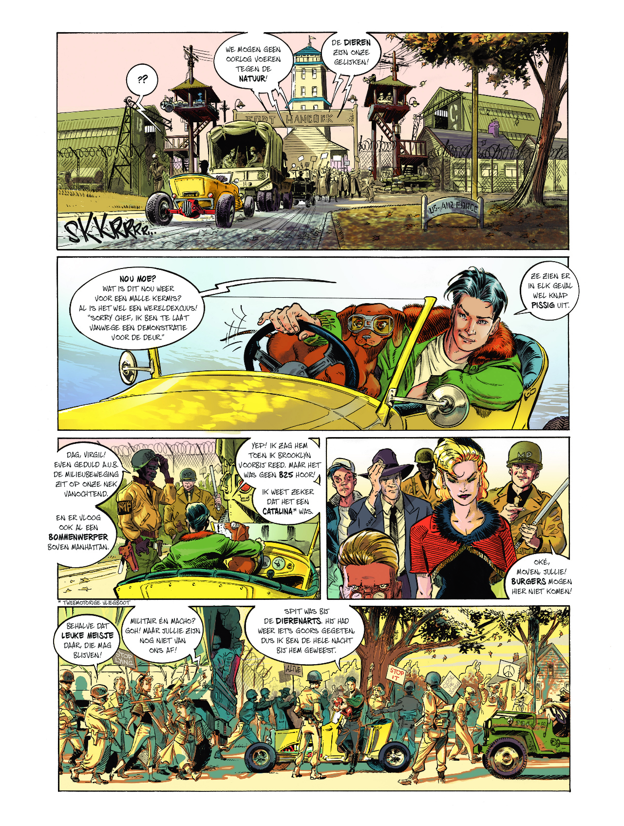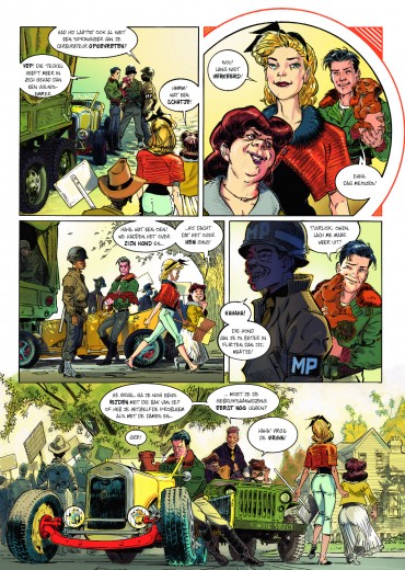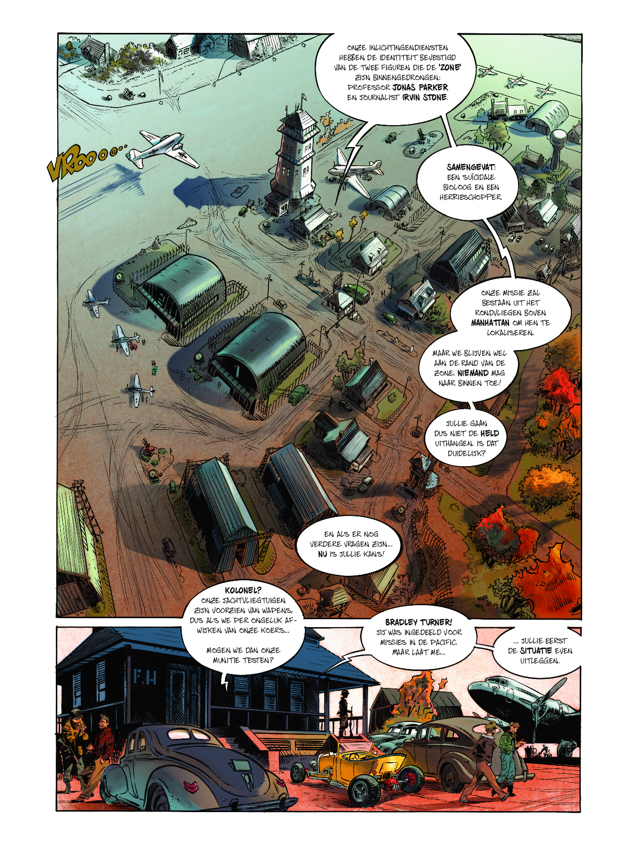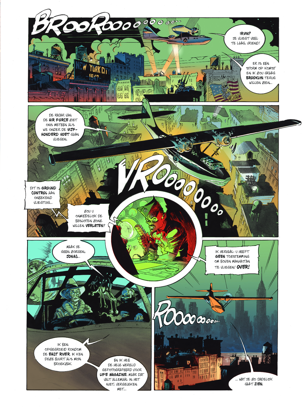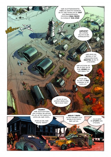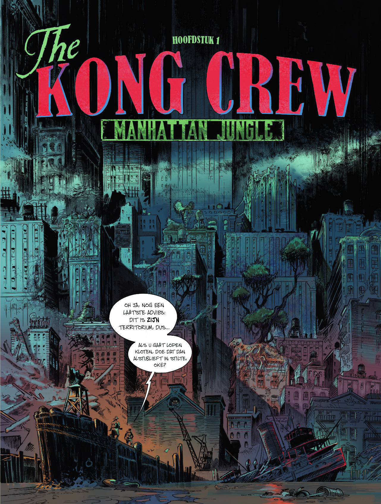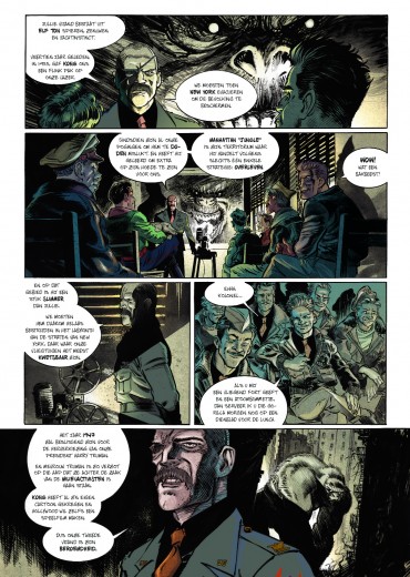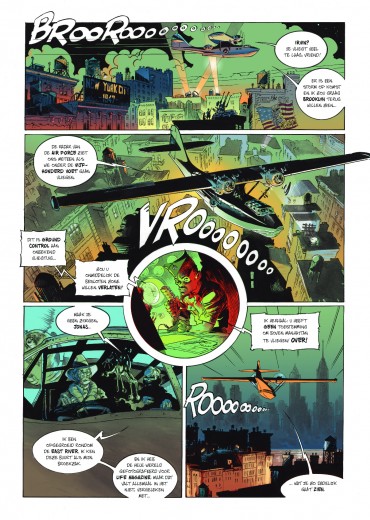 Eric Hérenguel neemt je mee op een vlucht naar een geheel andere wereld, gordels vast alstublieft! striptekenaar en stripscenarist Eric Hérenguel tekende ook volgende reeksen Het land van langvergeten Kiliwatch Krän Legende van Troy Ulysses 1781 Oekaze Zilveren Maan boven Providence > The Kong Crew Kong Crew deel 1/3 Wat als Kong niet dood zou zijn en de strijd had gewonnen? 1947 Manahtten is een Jungle geworden die een verboden zone geworden, de bevolking is in allerijl geëvacueerd waarbij Kong er nu samen met een heleboel andere prehistorische dieren heerst. Er zit ook iets Vampierachtig in die Jungle, waar de vegetatie ook 2x zo snel groeit als normaal, die aan het muteren is die zal meer vorm krijgen op het einde van de reeks….. Manhatten Jungle wordt door het Amerikaans leger super goed beveiligd zodat er geen dieren naar buiten kunnen. Één van de piloten, Virgil die voor de observatie instond komt echter terecht in die zone op zoek naar 2 ontdekkingsreizigers. Hérenguel geeft hier duidelijk zijn interesse aan voor vliegtuigen ( zijn vader en broer waren piloot in de jaren ’60) en de vintage stijl van de jaren 40 zoals in de films van Frank Capra, de strips van Eisner, Frazetta, Wood,… . Het hoofdpersonage is een niet het type held die we kennen maar een eerder onhandige, piloot met wat communicatie problemen. De reden waarom Kong niet zo expliciet in beeld komt in dit eerste deel, vergelijkt Hérenguel met de film “ Alien” van Ridley Scott waarbij het niet veel in beeld brengen van Alien het personage meer angst uitstraalt. We zullen hem wel meer zien naar het einde van de reeks toe. Tevens is er een project hangende om de strip in tekenfilm uit te brengen in 12 afleveringen waarbij Amazon Prime Video of Netflix interesse hebben. De reden waarom men Kong gebruikt en niet King Kong is omdat deze naam auteursrechtelijk beschermd is. In ieder geval een strip om naar uit te kijken, met wat comics invloeden, vintage stijl, avontuur, dynamiek, romantiek, spanning, mooie amazones en een …. Tekel! Bij de luxe uitgave en gewone versie krijg je bij stripweb nog een mooie gesigneerd ex-libris bij, en dit helemaal gratis. Een zeer mooi uitgegeven strip door Dark Dragon Books die een echt pareltje is. Wat als Kong de strijd had gewonnen? Het is 1947, 14 jaar nadat Kong de overwinning behaalde. Manhattan is geëvacueerd en verklaard tot verboden zone. Op de naleving van deze regels wordt toezicht gehouden door 'The Kong Crew'. Dit zijn de avonturen van dit elite corps!