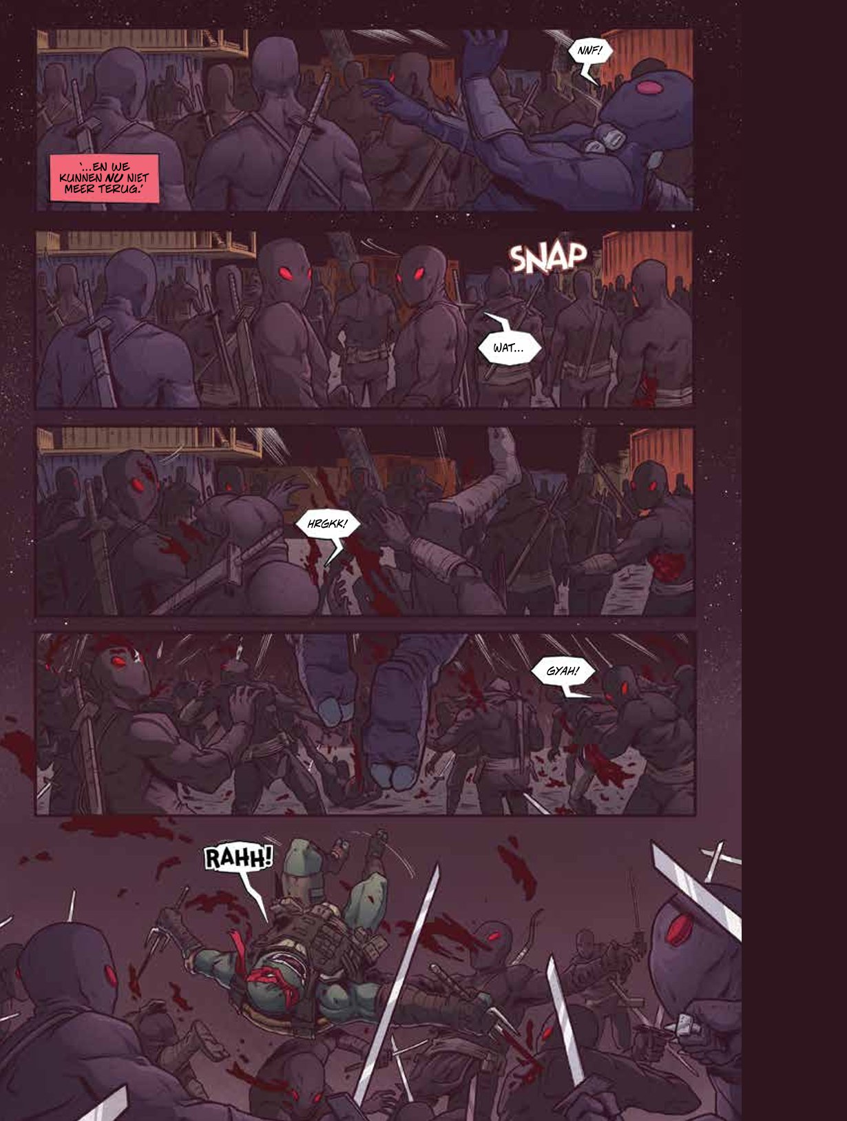 In een toekomstig New York City dat heel anders is dan het huidige, begint een eenzame overlevende Turtle aan een ogenschijnlijk hopeloze missie om gerechtigheid te krijgen voor zijn gevallen familie en vrienden. Teenage Mutant Ninja Turtles The Last Ronin Tekst: Kevin B. Eastman, Peter Laird, Tom Waltz Tekeningen: Esau Escorza, Isaac Escorza ISBN 1: 9789464604917 Softcover 64 blz.