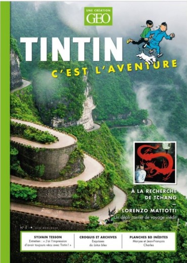 Franstalig In 1936 verscheen het eerste avontuur van Kuifje in het Verre Oosten : De blauwe Lotus, een avontuur dat een zeer genuanceerde visie op China biedt, zeer verschillend van de soms talrijke clichés van de eerste albums. Voor deze fictieve reis heeft Hergé zich voor het eerst goed gedocumenteerd en werkt hij samen met een Chinese beeldhouwstudent, Tchang Tchong-jen. Deze ontmoeting markeert een beslissend keerpunt in zijn creatieve werk en verandert zijn kijk op andere culturen die hij vanaf dan zo waarheidsgetrouw mogelijk wil voorstellen. De kunst van de tekening van zijn vriend zal ook een blijvende indruk op zijn werk achterlaten. Het is het begin van de klare lijn. « Dankzij u heeft mijn leven een nieuwe wending genomen. U heeft me heel veel dingen laten ontdekken : de poëzie, het gevoel van de eenheid van de mens en het universum. » ,dit schrijft Hergé in een brief aan Tchang. Beknopt overzicht : Een interessant dossier gewijd aan de vriendschap tussen Hergé en de Chinese beeldhouwer, Tchang Tchong-jen, die het werk van de tekenaar ingrijpend wijzigde. Een exclusief interview met de dochter van Tchang, TCHANG YIFEI, die over deze artistieke en menselijke ontmoeting vertelt. Een panoramafoto bij het openen van het tijdschrift, een grote traditie van deze GEO-editie. De geheimen van SYLVAIN TESSON, de nostalgische avonturier van de wereld van Kuifje, geïllustreerd met foto's van Vincent Munier, genomen tijdens hun reis om de sneeuwluipaard te ontmoeten. Onuitgegeven platen van de stripverhalen van MARYSE en JEAN-FRANCOIS CHARLES. Het reisboekje van LORENZO MATTOTTI, de Italiaanse genie van de kleuren. Een GEO-verslag over Wakhan, de vergeten vallei van Afghanistan. Schetsen en werktekeningen van Hergé rond het thema China. Een historisch onderzoek : hoe de Nautilus de haaienonderzeeër van professor Zonnebloem inspireerde ? Een indringende blik op de stammen in het Amazonegebied, de visie van Hergé op de hedendaagse strijd. Een reportage van de wereldtournee, een nieuwe toeristische trend voor iedereen ?