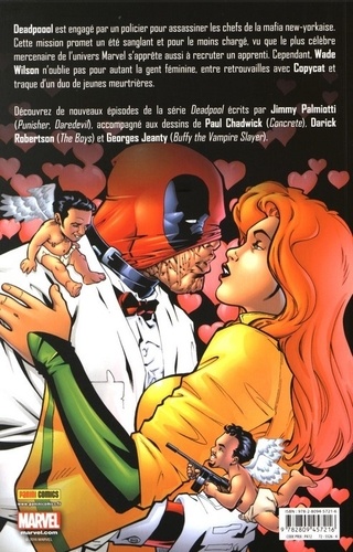 Deadpool est engagé par un policier pour assassiner les chefs de la mafia new-yorkaise. Cette mission promet un été sanglant et pour le moins chargé, vu que le plus célèbre mercenaire de l'univers Marvel s'apprête aussi à recruter un apprenti. Cependant, Wade Wilson n'oublie pas pour autant la gent féminine, entre retrouvailles avec Copycat et traque d'un duo de jeunes meurtrières. Découvrez de nouveaux épisodes de la série Deadpoal écrits par Jimmy Palmiotti (Punisher, Daredevil), accompagné aux dessins de Paul Chadwick (Concrete), Darick Robertson (The Boys) et Georges Jeanty (Buffy the Vampire Stayer).