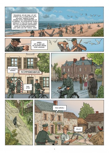 een reeks in 8 delen en in ieder album een uitvoerig dossier! D-day. De grootste militaire operatie van de Tweede Wereldoorlog! Londen, april 1944. Peter MacTavish is Picadilly Circus aan het schilderen wanneer hij wordt aangesproken door een zekere Trevor Lester, arts bij het Engelse leger. Lester weet zijn werk te waarderen en omdat hij vreest de nakende invasie niet te zullen overleven vraagt hij Peter een portret te schilderen van hem en zijn vrouw. Dan blijkt dat ook Peter zich vrijwillig heeft aangemeld om als schilder de oversteek en de ontscheping vast te leggen en zo aan zijn ouders te bewijzen dat hij niet zomaar een watje van een kunstenaar is… Later, in een militair kamp in Zuid-Engeland waar de soldaten zijn gelegerd in afwachting van de landing in Normandië, vindt Peter zijn broer Jim terug, die lid is van de Rangers van kolonel Rudder. Peter zal ontschepen op Omaha Beach, terwijl Jim de pointe du Hoc als bestemming krijgt… We volgen het relaas van de twee broers, tot het moment waarop beide sterk uitgedunde legergroepen bijeen komen om samen verder zuidwaarts te trekken…