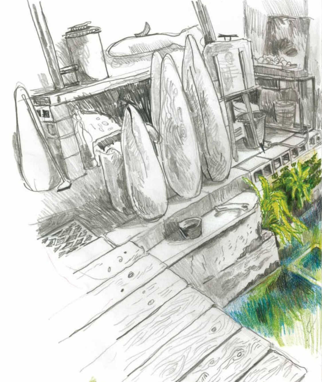 L’œuvre de Jeroen Janssen oscille sans cesse entre le voyage et le retour chez soi. Qu’il dessine les polders de Doel, les collines du Rwanda ou son propre quartier de Ledeberg, son regard est toujours à la fois précis et esquissé, intime et profondément humain.