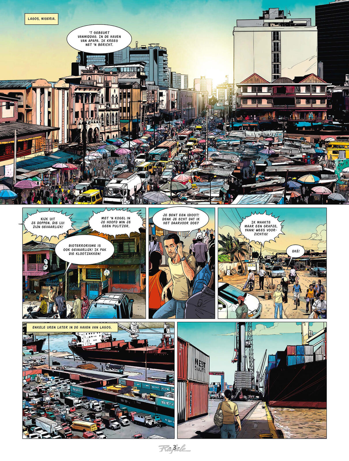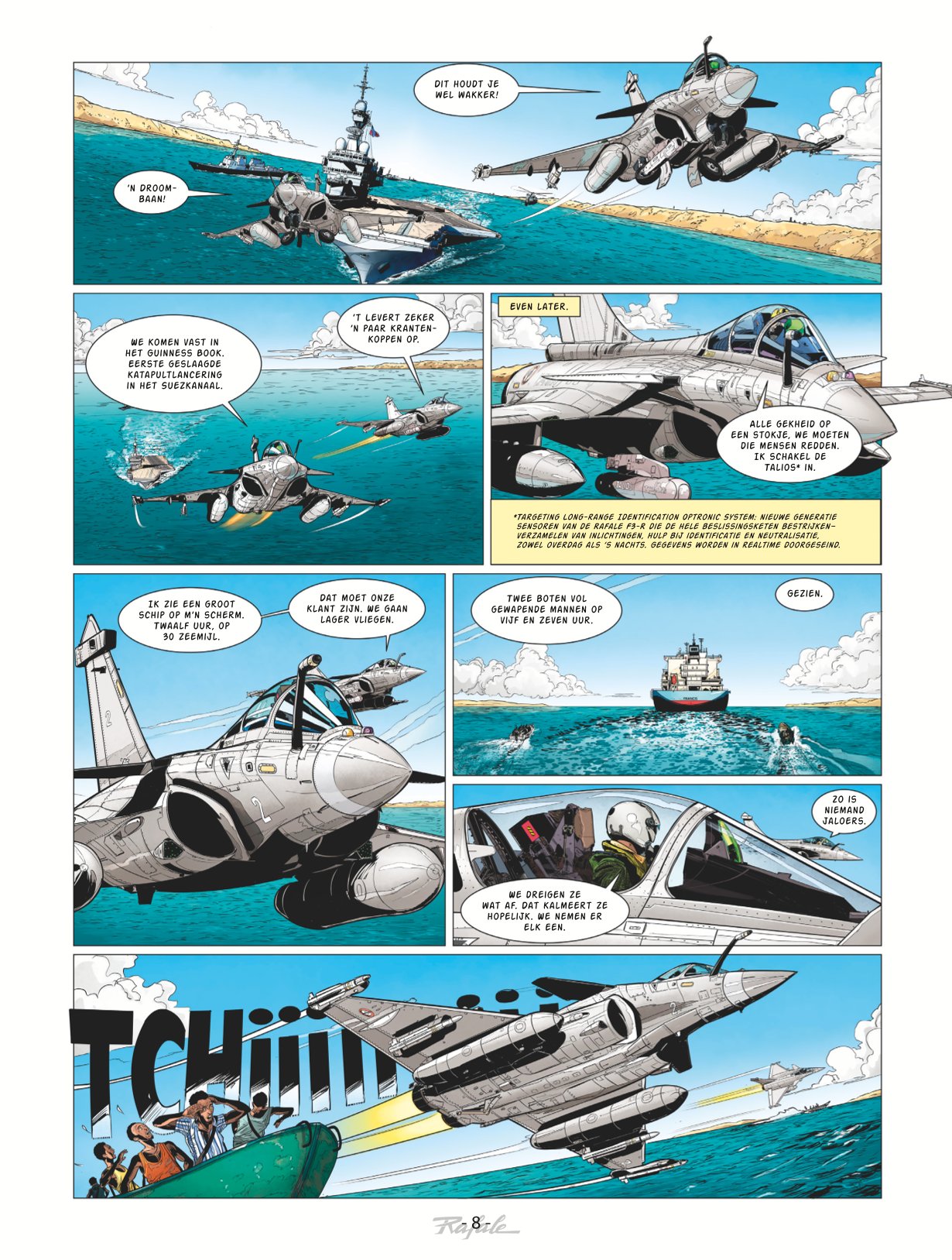 Superspannende vliegtuigstrip met verhalen die dicht op de actualiteit zitten. Scenario van Frédéric Zumbiehl (Buck Danny Classic). Tekeningen van Loute (Alfa - Eerste wapenfeiten). Een journalist die onderzoek doet naar een ontmoeting tussen een Russische wetenschapper en een jihadist ergens in een Afrikaanse haven, wordt doodgeschoten. Terwijl het vliegdekschip Charles de Gaulle op de Rode Zee vaart, breekt in een buurland een dodelijke epidemie uit. Het schip wordt omgeleid en een humanitaire missie wordt op verkenning gestuurd. Zo begint een nieuwe cyclus van avonturen voor onze helden van het mythische 12F-squadron aan boord van de Charles de Gaulle.