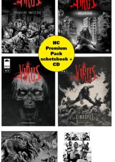 Virus 1-4 HC Premium Pack + Schetsboek + CD V Een heksencult gebruikt een eeuwenoud magisch boek om andere werelden te verkennen op zoek naar meer kennis. Op één van die werelden gaat het volledig mis en wordt één van hen geïnfecteerd door een duistere entiteit. Eens terug op aarde infecteert de entiteit alles en iedereen rondom hen. De cult en het stadje waarin ze wonen wordt in een mum van tijd overspoeld door allesverlindende zombies. Sebastian, de laatste overblijvende heks dwingt Will, die op de verkeerde plek op de verkeerde moment in het stadje aankomt, om de krachten van de heksencult over te nemen vooraleer de entiteit hen te pakken krijgt. Will, die voortaan door het leven gaat als Warlock, slaat op de vlucht met het boek en doolt enkele maanden doelloos rond. (in de chaos heeft hij immers ook zijn zoontje Sammy verloren) Uiteindelijk vindt hij een onverwachte bondgenoot en stoot hij op een groep overlevers die aangevallen worden door een nog nooit geziene horde zombies...