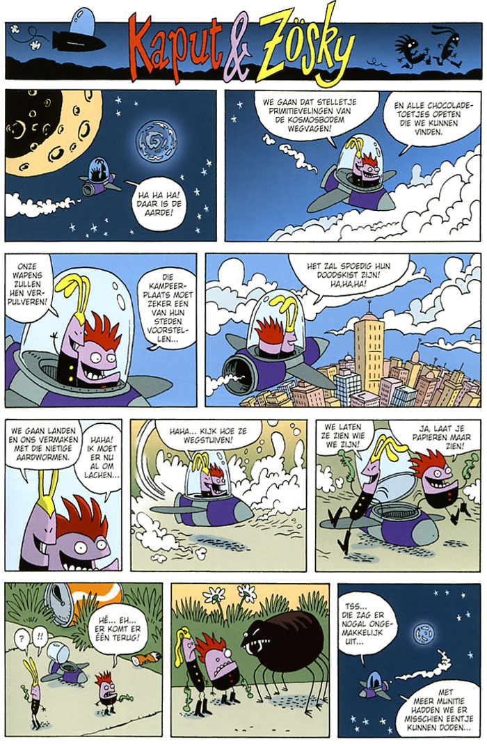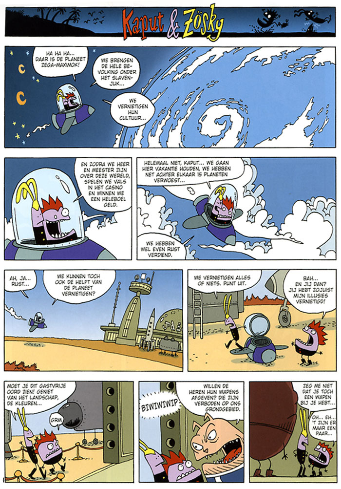 'Ik wil dat de mensen ongelukkig zijn, onderdrukt. Ik wil de mensen een schop onder hun kont geven.' Kaput en Zösky zijn ruimtetuig. Ze hoppen van planeet naar planeet om daar de bevolkingen aan zich te onderwerpen. Als dat maar goed gaat? Nou niet echt.