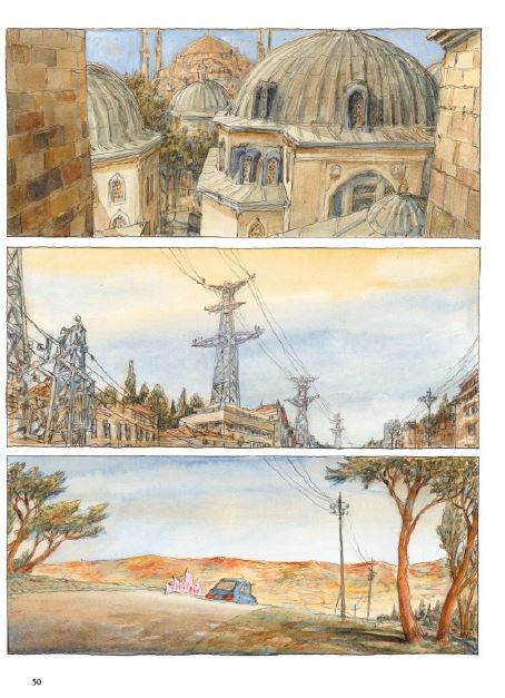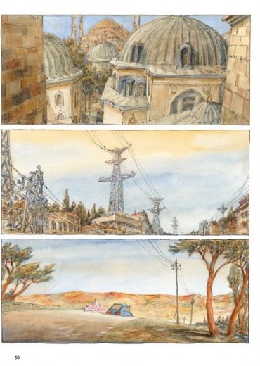 Er bestaat ook een artbook van Artboek Nicolas de Crecy Juli 1986. Nicolas en zijn neef Guy vervolgen de roadtrip in hun oude Citroën Visa door Turkije, op de hielen gezeten door een dode dichter die over zijn auteursrechten waakt. Monotone trajecten over asfaltwegen, waar alleen klankpoëzie voor afleiding zorgt, worden afgewisseld door schilderachtige, eeuwenoude steden, zoals het overweldigende en angstaanjagende Istanbul. Hun odyssee heeft geen eindbestemming – ze willen simpelweg zo ver mogelijk zien te komen. Onderweg denkt de tekenaar na over de keuzes die hij in zijn leven heeft gemaakt en mijmert hij over de werking van het geheugen. Sommige indrukken zijn nog haarscherp, terwijl zijn herinneringen aan de Bosporus zijn verdrongen door de aquarellen van William Turner. En onwillekeurig dwalen zijn gedachten af naar zijn reis naar Wit-Rusland, tien jaar later, waar de wolk van Tsjernobyl nog altijd zijn schaduw wierp. Nicolas de Crécy (1966) was animator o.a. bij Disney alvorens hij in 1991 debuteerde met zijn meerder malen bekroonde boek ‘Foligatto’. Daarna publiceerde hij o.a. ‘Léon La Came’ (Alph Art, Beste Album Angouleme) , ‘Période Clacaire’ (in opdracht van het Louvre) en ‘Salvatore’ ( Nominatie Eisner Award), ‘De hemelse Bibendium’.