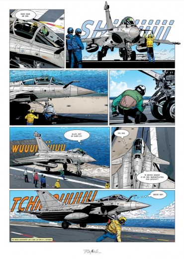 Superspannende vliegtuigstrip met verhalen die dicht op de actualiteit zitten. Scenario van Frédéric Zumbiehl (Buck Danny Classic). Tekeningen van Loute (Alfa - Eerste wapenfeiten). Een dodelijk kat-en-muisspel. Oorlogsschat speelt zich af in Afrika, tussen Soedan en Somalië. Ga mee op jacht naar het goud van Al Qaeda. De schat waar de westerse inlichtingendiensten al jarenlang actief op zoek naar waren, wordt uiteindelijk gespot aan boord van een vrachtschip dat op doorvaart is op de Rode Zee. Maar de onderschepping loopt uit op een ramp wanneer twee F/A-18E Super Hornets van het vliegdekschip Nimitz worden neergeschoten door mysterieuze MIG-29’s. Een Franse spionagesatelliet is getuige van de feiten en stuurt Frankrijk op een schattenjacht. Tom Nolane, Jessica Nate en hun vrienden van het eskadron 1/7 Provence gaan mee op jacht. Maar de inzet stijgt dramatisch wanneer Kolonel Azad Korgan, een geduchte gevechtspiloot die door de terroristen ingehuurd wordt, in de strijd komt. Vanaf dan verandert voor onze vrienden de schattenjacht in een dodelijk kat-en-muisspel...