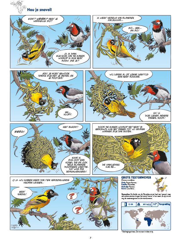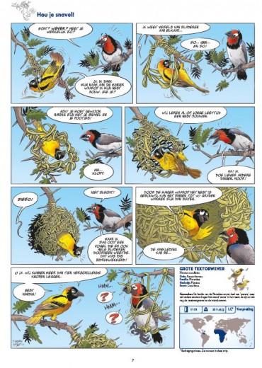 Alles, maar dan ook alles over vogeltjes! Ze zitten overal om ons heen, in de lucht, in de bomen, in de tuin. Ze zijn zelfs onze taal al binnengedrongen: zingen als een nachtegaal, een kip zonder kop… Maar kan jij een alk van een pinguïn onderscheiden, een uil van een oehoe of een meeuw van een zeemeeuw? Wist jij dat de zuidereilandkiwi al miljoenen jaren bestaat, en dat de Vlaamse gaai een fabelachtig geheugen heeft? Of het nu trekvogels zijn, vissers of jagers, met dit album vol weetjes en humor kom je eindelijk alles te weten over onze gevederde vrienden.