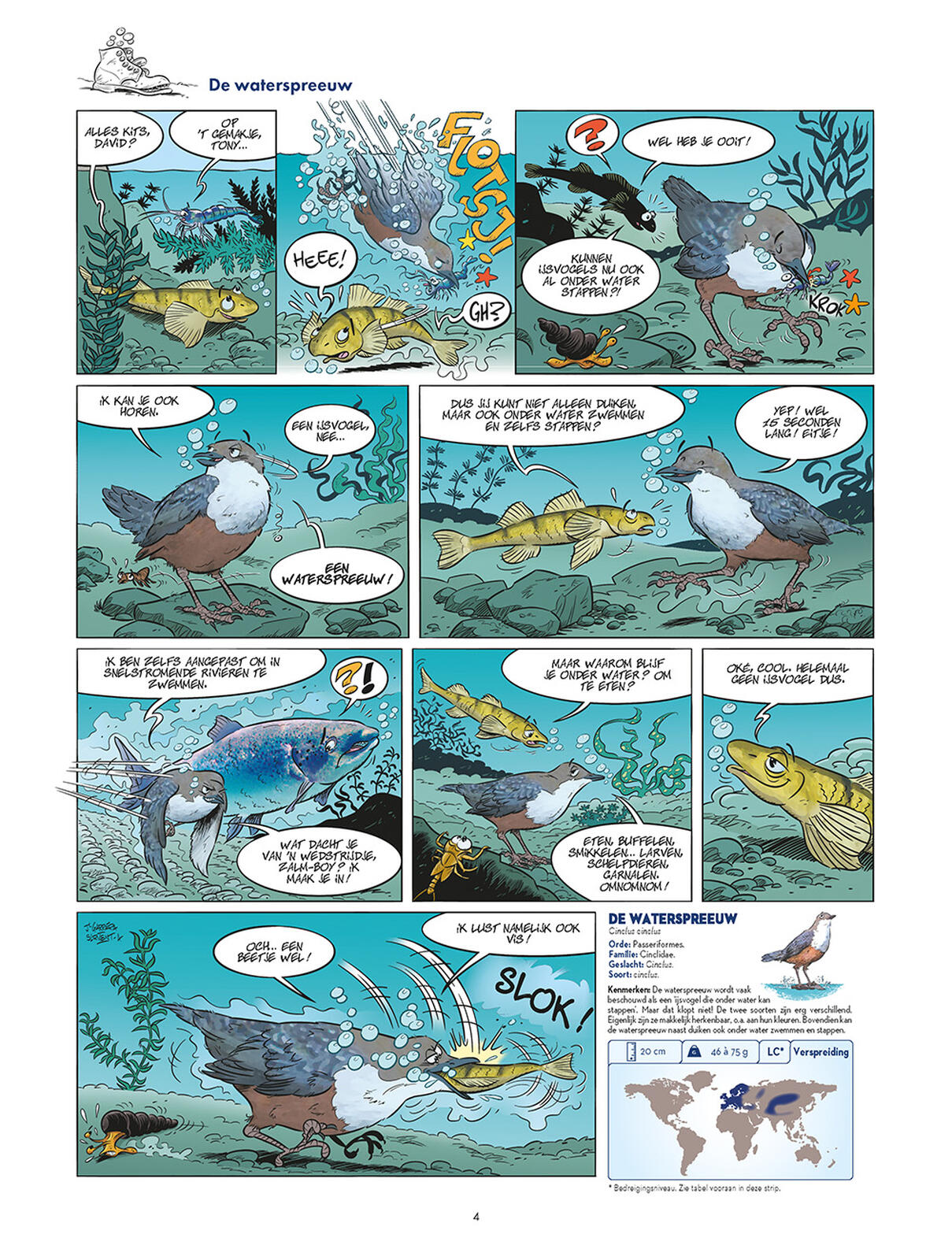 Alles, maar dan ook alles over vogeltjes! Ze zitten overal om ons heen, in de lucht, in de bomen, in de tuin. Ze zijn zelfs onze taal al binnengedrongen: zingen als een nachtegaal, een kip zonder kop,… Maar kan jij een alk van een pinguïn onderscheiden, een uil van een oehoe of een meeuw van een zeemeeuw? Wist jij dat de zuidereilandkiwi al miljoenen jaren bestaat, en dat de gaai een fabelachtig geheugen heeft? Of het nu trekvogels zijn, vissers of jagers, met dit album vol weetjes en humor kom je eindelijk alles te weten over onze gevederde vrienden.