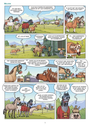 In dit derde album krijgt ons gezellige clubje paarden en pony's te maken met een vreemde wedstrijd vol chaotische obstakels ... Spring maar, als je durft! Op de manege van onze paardenvrienden wordt voor het eerst een wedstrijd tussen maneges georganiseerd, met aan kop de springkampioen Fenomenaal, het idool van Bijou! Met een superopgewonden Flash, een Cookie die het maar niks vindt dat er andere paarden op zijn wei grazen en een Bijou die kost wat kost de hoogste plaats op het podium wil halen, zijn de rivalen van buiten niet van plan met de staart tussen de benen af te druipen ... Te paard! is een humorstrip voor paarden- en andere dierenliefhebbers van alle leeftijden!
