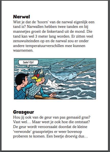 Wist je dat de Oude Egyptenaren hun wenkbrauwen afschoren als hun kat stierf? Of dat leerlooiers in de Middeleeuwen urine gebruikten om hun leder mooi te krijgen? En dat dolfijnen met één oog open slapen? Of dat een giraf zijn oor kan reinigen met zijn tong? Heb je zin om met Suske en Wiske heel wat bij te leren over geschiedenis, dieren en natuur? Duik dan in deze boeken boordevol leuke weetjes. Dankzij het handige zakformaat neem je dit weetjesboek overal mee naartoe. Zo kan je al je vrienden verbluffen met leuke weetjes!