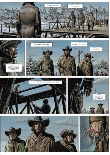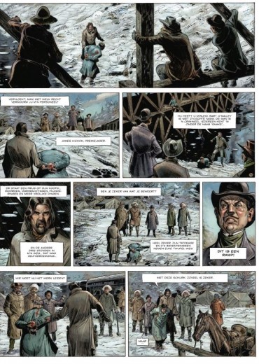 Gelimiteerde hardcover Striptekenaar Lamontagne jacques ( Canada, °1961) werkt ook aan volgende stripreeksen 1. Aspis 2. De Druiden 3. Haven 4. Yuna 5. Shelton&Felter 6. Sheridan Manor 7. Wild West Strip scenarist Gloris Thierry kennen we dan weer van volgende reeksen 1. Aspis 2. Cleopatra 3. Codex Angelus 4. Isabelle 5. Missi Dominici 6. NSA 7. Valois 8. Wild West 9. Kurusan Wanneer Bill Hickok een getraumatiseerd en verdwaald meisje op zijn pad vindt, kan hij onmogelijk vermoeden waar die ontmoeting toe zal leiden. De premiejager zweert de desperado’s op te sporen die haar familie hebben uitgemoord. Dood of levend. Niets of niemand zal Bill tegenhouden. Al wie hem uitdaagt, eindigt zes voet onder de rond. Maar het lot is grillig. Een zandkorrel doet de onstuitbare machine stokken: Calamity Jane. 'De verovering van het Wilde Westen rolt als een golf over de Verenigde Staten en overspoelt ook Monument Valley, waar de Navajo's hun toevlucht vonden. In die wereld vol geweld, zonder God of gebod, leeft Martha Cannary. Tekenaar Jacques Lamontage laat in deze realistische western zien wie deze vrouw was voor ze Calamity Jane werd. Het resultaat is een album dat meer doet dan alleen de legende verbeelden. Thierry Gloris beschrijft in zijn scenario het portret van een jonge vrouw die vecht om vrij te zijn. Het begin van een indrukwekkend epos.'