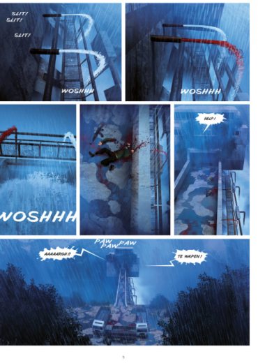 Score moyen 5 / 5Zes jaar na de eerste (Wow! Wat een knap verhaal! Wow! Wat een sterke personages! Wow! Wat een geniale tekeningen!) besluit deel 5 deze dystopische reeks met een apocalyptisch orgietje van geweld en bloed. En we staan nog steeds in wow-bewondering voor hoe Benjamin Von Eckartsberg ons als lezer op het verkeerde been kan zetten en absoluut niet kiest voor de sympathiekste weg, voor hoe Thomas Von Kummant ons versteld doet staan van zijn wervelende tekenwerk en voor hoe jammer we het vinden dat deze reeks ten einde is. Bijzonder aan deze serie was hoe de overlevingsstrijd van de mensen in Kolonie nr. 16 tegen de monsterachtige witte vloed zich stilaan ontwikkelde tot een interessant conflict tussen jongeren en volwassenen, een strijd voor rechtvaardigheid. Echter, daar waar je, afgaande op de vorige delen, nog een evolutie zag in hoe de aanvankelijk sterk verdeelde jongelui van Fort Apache naar elkaar toe groeiden en zich emancipeerden in de beproefde nederzetting, krijgt het generatieconflict in deel 5 een climax die een totaal andere richting uitgaat. Ging het van gung ho!" in de strijdkreet-betekenis die Amerikaanse soldaten in de Tweede Wereldoorlog erin zagen (van een overmoedige "niets kan mij deren"-inzet) naar de oorspronkelijke Chinese betekenis van "goed samenwerken", dan gaat het in deel 5 naar een "gung ho maar!" van "nu gaan alle remmen los en dat kan niet goed aflopen". In een rotvaart — vergelijkbaar met de snelheid waarmee wij op een dak zouden kruipen wanneer een breker op ons afstormt — dondert het verhaal van de ene schok naar de andere. Het is lang geleden dat we na het lezen van een strip wat stilletjes werden. Konden we ons geheugen maar wissen en opnieuw van nul genieten van deze reeks! Dementie zou nu bepaald een zegen zijn. KOEN DRIESSENS ssz"