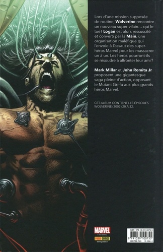 Lors d'une mission supposée de routine, Wolverine rencontre un nouveau super-vilain... qui le tue ! Logan est alors ressuscité et converti par la Main, une organisation maléfique qui l'envoie à l'assaut des super-héros Marvel pour les massacrer un à un. Les héros pourront-ils se résoudre à affronter leur ami ? Mark Millar et John Romita Jr proposent une gigantesque saga pleine d'action, opposant le Mutant Griffu aux plus grands héros Marvel.