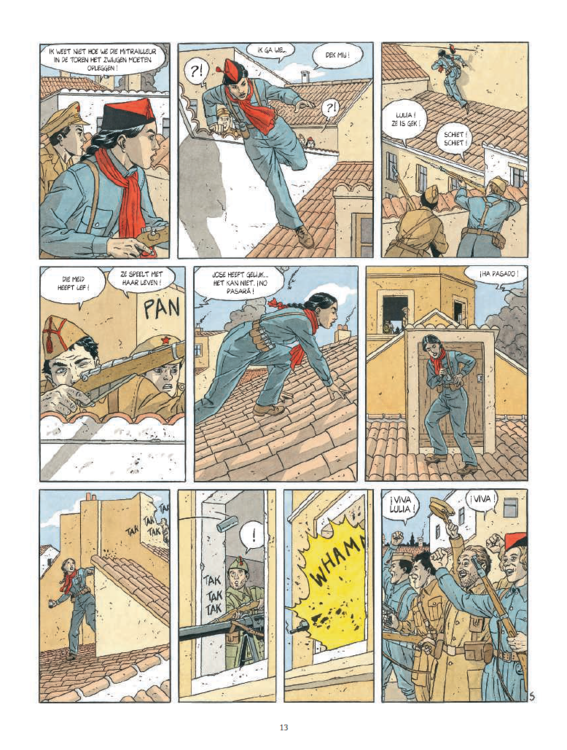 De winter van 1936. Spanje zit in volle oorlog: de Republikeinen staan recht tegenover de Nationalisten van Franco. Stalin wil de Spaanse regering helpen en levert verschillende Moscagevechtsvliegtuigen aan de Republikeinen. Roman Kapulov is een van de piloten die door Rusland worden meegestuurd. Hij haalt de ene overwinning na de andere, wat hem de bijnaam de Vliegenkoning oplevert. Als Spaanse soldaten een groepje kloosterlingen brutaal aanpakt, komt Roman tussenbeide. Daarbij ontmoet hij de mooie Lulia Montago, een jonge milicienne met een gevaarlijke reputatie. Een blik volstaat opdat de twee halsoverkop verliefd worden op mekaar. Maar Spanje is hun liefde niet goed gezind. Verraad, complotten, de strategische belangen van de sovjets en van de nazi's - je weet niet goed meer op wie je nog kunt rekenen ... Zijn de gevoelens van Roman en Lulia sterk genoeg om de horror van de oorlog te overleven? Een liefdesverhaal in het luchtruim boven de Spaanse burgeroorlog. Na Mezek een nieuwe vliegtuigstrip van Yann (Edelweiss, Berentand) en André Juillard (7 levens van de sperwer, Blake & Mortimer, Het dagboek - Na de regen).