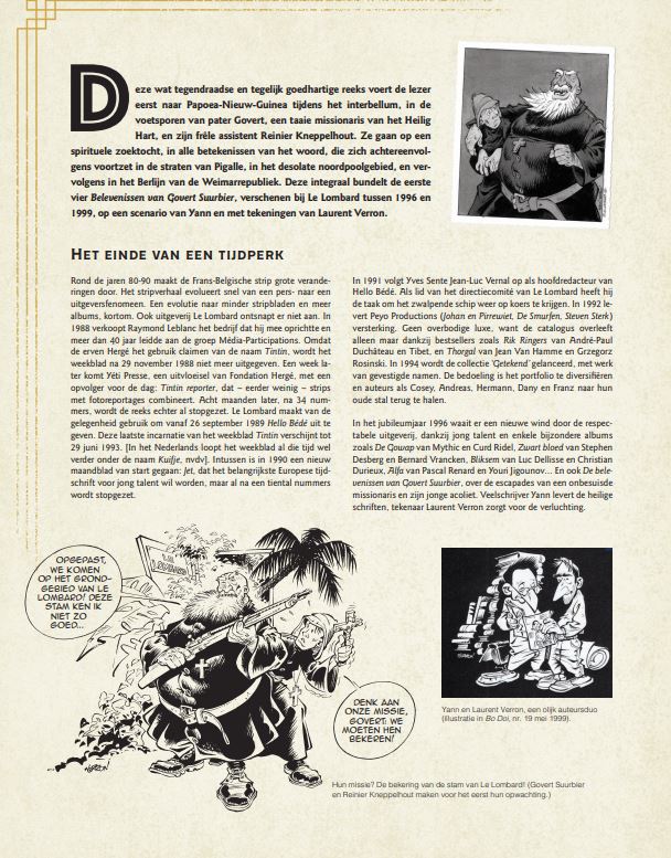 Govert Suurbier is een man met naam. Deze goede missionaris worstelt om door het bos de bomen te blijven zien. Het Vaticaan vertrouwt de delicaatste en ondankbaarste taken aan hem toe. De jonge pater Reinier Kneppelhout staat hem bij in zijn beproevingen. Toegegeven, de onstuimige novice heeft het niet makkelijk zich aan te passen aan de wereld rondom hem en onderneemt goedbedoelde pogingen om al wat beweegt te bekeren. Voor hij Bollie & Billie overnam, maakte Laurent Verron met verve de tekeningen voor de getalenteerde Yann. Het resultaat is ongemeen erudiet en iconoclastisch.