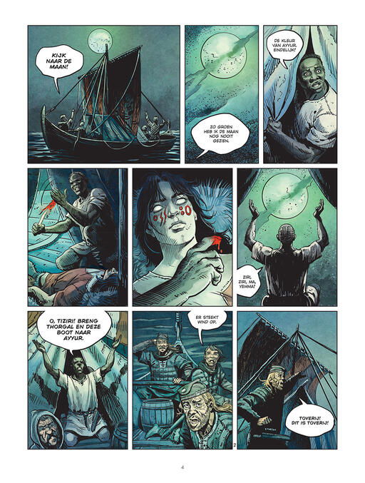 Ondertussen hoopt Seck nog altijd zijn goede vriend Thorgal te kunnen redden van de dood. Eindelijk krijgt de maan de groene kleur van Ayyur, de Berberse maangod. Er is terug hoop. Maar zal hier geen hoge prijs voor dienen betaald te worden? Aaricia maakt zich zorgen over de grottenmensen en maakt kennis met Grym en zijn vrouw Oonila. De naam van hun baby mogen we niet weten. Van de helderziende Lydia krijgt Aaricia een voorspelling te horen: "De man voor wie je hart zo dwaas slaat, zal je veel pijn en wanhoop bezorgen." Wij weten natuurlijk al meer... Van Thorgal weten we dat hij nog enkel doet wat zijn hart hem opdraagt. Hij weigert nog langer de wetten van goden en mensen te gehoorzamen. En toch wordt hij alweer verplicht een proef af te leggen: de mond van de waarheid. Maar ja, wat doet een mens als hij zo graag terug wil naar de wereld van de levenden? In schimmenland blijven is niets voor hem. En Grym? Of heeft Ayyur misschien nog een verrassing voor ons?