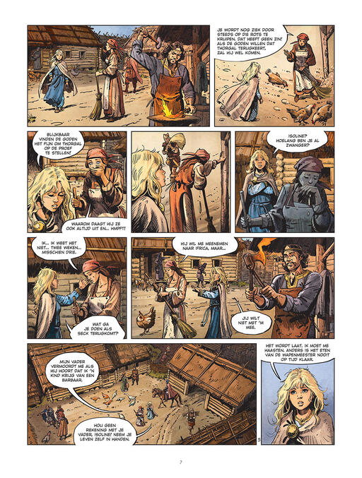 We zijn de vorige tien albums al heel wat te weten gekomen over de jeugd van het sterrenkind Thorgal en zijn leven tussen de geharde Vikingen. Of we nu echt hadden willen weten dat de jonge Thorgal zijn carrière begon als skald (troubadour) met een luit, laten we even in het midden. We genieten zeker wel van de talrijke verwijzingen naar albums uit de hoofdreeks. De lezers houden duidelijk van alle personages en dat verklaart dan ook het succes van de spin-offs Kriss van Valnor en Wolvin. Hierulf-de-denker vertegenwoordigt de Althing — de hoge Vikingraad — maar dat is onvoldoende om nog een nieuwe subreeks op te starten. Bovendien maken we ons zorgen over zijn gezondheid. Andere personages zijn heel handig om ooit nog eens op te duiken. Denken we bijvoorbeeld maar aan Runa en de mooie, blonde Sigurd.