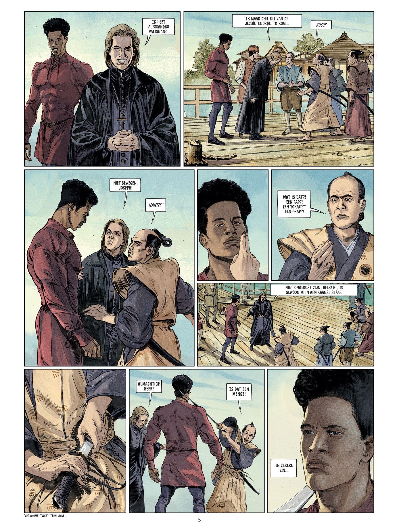 Emiliano Zarcone (Italie, 1978) : Dessinateur italien ayant collaboré avec le scénariste Thierry Gloris sur plusieurs projets. "Kurusan, le Samouraï Noir" est sa première œuvre traduite en néerlandais. Son style graphique, imprégné d'influences italiennes, donne vie au récit de manière remarquable.