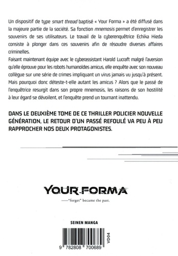 Un dispositif de type smart thread baptisé "Your Forma" a été diffusé dans la majeure partie de la société. Sa fonction mnemosis permet d'enregistrer les souvenirs de ses utilisateurs. Le travail de la cyberenquêtrice Echika Hieda consiste à plonger dans ces souvenirs afin de résoudre diverses affaires criminelles. Faisant maintenant équipe avec le cyberassistant Harold Lucraft malgré l'aversion qu'elle éprouve pour les robots humanoïdes amicus, elle enquête avec son nouveau collègue sur une série de crimes impliquant un virus jamais vu jusqu'à présent. Mais pourquoi donc déteste-t-elle autant les amicus ? Alors que le passé de l'enquêtrice resurgit dans son propre mnemosis, les raisons de son hostilité à leur égard se dévoilent, et l'enquête prend un tournant inattendu.