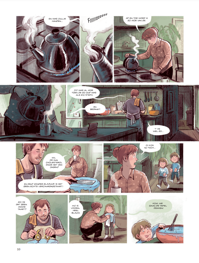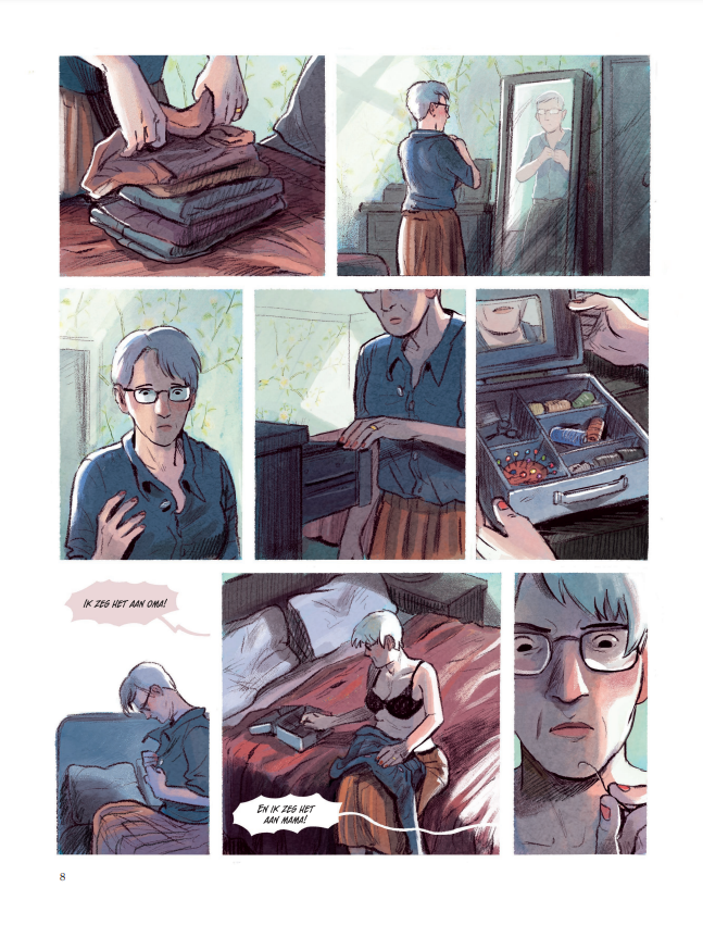 60 worden... Veel mensen vinden dat allesbehalve leuk en Josy al zeker niet. Ze wordt dus zestig en haar 'kwartje' valt. De kaarsjes worden niet uitgeblazen tot verbijstering van de aanwezige familieleden. "Ik ga weg!" Ze vindt zich een slaaf van de sleur en geeft zichzelf een verjaardagscadeau. Maar kies je na 35 jaar huwelijk zomaar voor jezelf? Kiezen is verliezen. Met hun Volkswagen busje kiest ze voor de vrijheid. "Ik mag toch over mijn eigen leven beslissen? Ik voel me levend begraven in mijn huwelijk." Met een gsm op zak is het natuurlijk niet gemakkelijk om te verdwijnen. De kinderen - Martin en Stéphanie - bellen uiteraard meteen. De relatie van Josy met haar kinderen verdient zeker geen prijs. Eerst ontmoet ze Camélia. Die heeft een zoontje van acht maanden, Tom. Ze worden vriendinnen. De man van Camélia ging vreemd met de buurvrouw. Even later wordt Josy lid van de COH (Club van Ontsnapte Huissloven). Niet dat ze lesbisch is, maar daar wordt ze verliefd op Christine. Je kan haar zeker geen label geven. Maar gaat ze nu niet wat snel? En plots gaat ze ook roken... Hoort dat er nu echt bij? De heldere tekeningen zijn prachtig ingekleurd. Volgens Aimée de Jongh (De terugkeer van de wespendief, Reborn, Taxi) zelf komt er geen zwart in voor. Dit album zit in de collectie 'Vrije Vlucht'. Die naam is hier wel raak gekozen. Toen Aimée de vraag kreeg van Ingrid Chabbert om dit album te tekenen, heeft ze toch eerst nog 'Dagen van Zand' gemaakt. Dan was er toch een buffer voor 'Bloesems in de herfst'. Het thema is immers toch wel wat vergelijkbaar (liefde op leeftijd). Josy Bertille is in het begin een beetje onsympathiek, vindt Aimée. Maar... "She grows on you." Dat weet ik nog zo niet. Ik heb als man dit verhaal gelezen. Ik weet eigenlijk niet of dat wel mocht. Van de arme echtgenoot van Josy komen we bitter weinig te weten. Zelfs zijn naam niet. Die maar één klok hoort, hoort maar één toon. Een verhaal heeft twee kanten: de waarheid en de andere waarheid. Van Ingrid Chabbert kennen we enkel 'Wachten op Bojangles' (2019) getekend door Carole Maurel. Ze dansen op Nina Simone's 'Mr. Bojangles' (1971). Dat is nog eens een idee: lekker dansen met mijn vrouw! Zou het mogen?