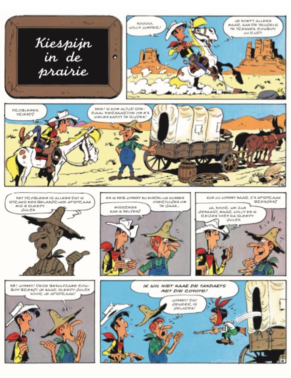 Bevat de zeven kortverhalen: Kiespijn in de prairie (Lucky Luke die zich over een snertjong ontfermt en hem bij de tandarts dropt); Westerse gastvrijheid (waarbij Luke bij de verkeerde mensen tijdens een feest aanklopt); Maverick (of hoe een kalf de mascotte werd van een cavalerie); De legendarische held (Hoe je door ernaast te schieten toch held kan worden); De handelaar (die altijd iets bij de hand heeft om je uit een netelige situatie te redden); De gevaarlijke overtocht (waarin beter werd nagedacht vooraleer over te steken) én Sonate in coltmajeur (waarbij plankenkoorts en de onjuiste setting voor enorme stress zorgt bij een pianist).