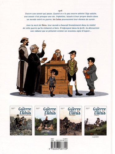1916. Encore une année qui passe. Quand on n'a pas encore atteint l'âge adulte, une année c'est presque une vie. Orphelins, laissés à leur propre destin dans un monde entré en guerre, les lulus poursuivent leur chemin de survie. Avec la mort de Hans, leur monde a basculé brutalement dans la réalité de cette guerre qu'ils évitaient si bien. S'enfonçant dans la forêt, ils découvrent une cabane qui se présente comme un nouveau signe d'espoir...