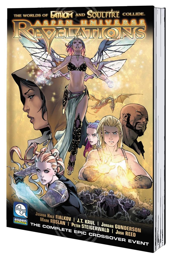 The most groundbreaking event in Aspen Comics' history collected!!! For over thirteen years, devoted Aspen Comics fans clamored for something special...something unique...something...UNIMAGINABLE! Aspen Comics answered the call for loyal fans and new readers alike with ASPEN UNIVERSE: REVELATIONS. Legendary creator Michael Turner's two greatest creations, FATHOM and SOULFIRE, united for the first time as one in this crossover story so massive in scope, it forged a BRAND NEW ASPEN UNIVERSE in the process! A magical being of unimaginable might has destroyed the world as they knew it, and it remains up to Soulfire's magical bearer of the light, Malikai, along with Fathom's preeminent heroine, Aspen Matthews, to try and restore order and peace to a world decimated by the malevolent power of dark magic! From the mind of Harvey, Eisner and Emmy Award nominated writer Joshua Hale Fialkov and New York Times Best-Selling author J.T. Krul, along with the amazing art abilities of Jordan Gunderson and Peter Steigerwald, comes this world-shattering crossover series event that set the stage for all future Aspen Comics titles to come!