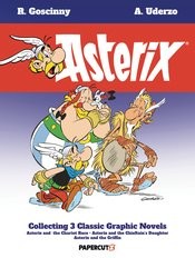 Three newly-translated classic Asterix stories in one volume! Like us, the Gauls and Romans suffer from poor road conditions. Julius Caesar creates a race to prove Roman roads are the best - and only a Roman can win! But our indomitable Gauls, Asterix and Obelix, are already off to the races! Then, Vercingetorix's daughter, Adrenaline, is targeted by the Romans. Asterix and Obelix are assigned to protect her - but Adrenaline is young and strong, and may not want their help! Can Adrenaline stay safe, with or without Gaulish heroes? Finally, the geographer Cartographus tells Caesar a legendary beast, a griffin, may exist! The hunt is on. Can Asterix and Obelix, and their tree-loving dog, Dogmatic, protect nature once more?