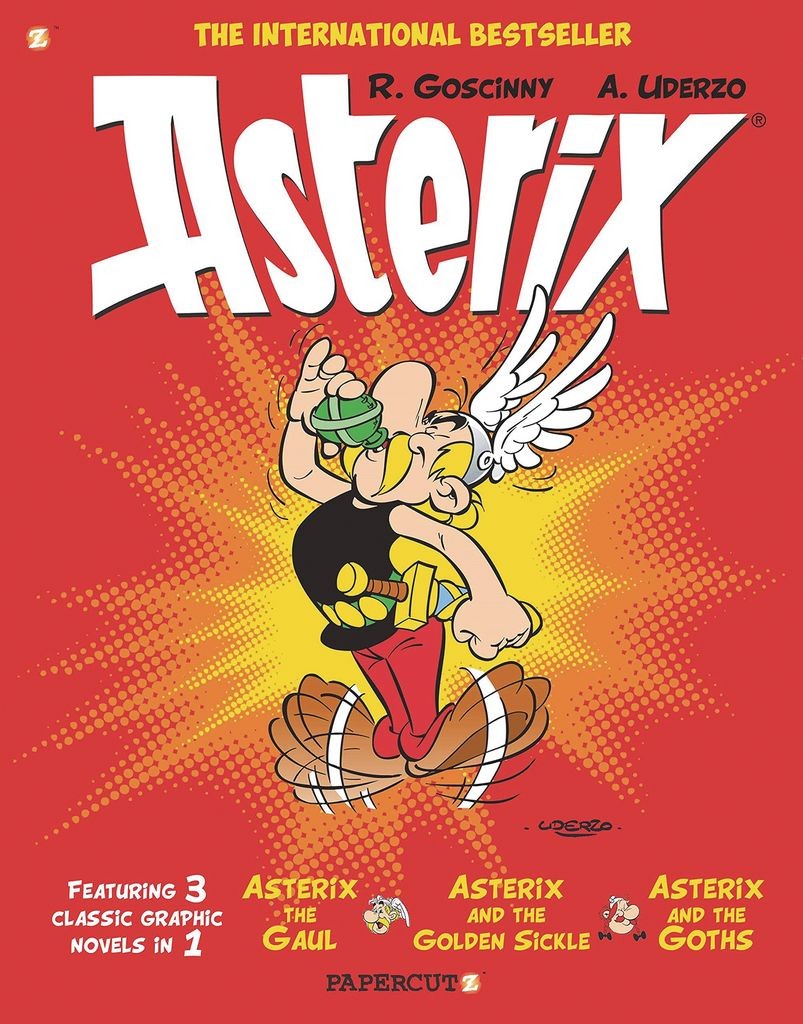 Asterix is celebrating 60 sensational years as an international comics superstar, and in the first collected edition from Papercutz, the stories are newly translated into American English for a new generation of fans! The story of Asterix starts here. Join the short, spunky, and super-powerful warrior from Gaul and his faithful friends-including the boar-eating delivery man Obelix and the ecologically-minded canine, Dogmatix-as they battle to protect their village against impossible odds. Asterix Omnibus volume one collects 'Asterix the Gaul,' 'Asterix and the Golden Sickle,' and 'Asterix and the Goths.' Three classic adventures in one great volume.