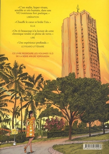 Ce livre regroupe les volumes 1 à 3 de la série Aya de Yopougon. Côte d'Ivoire, fin des années 1970. Aya, dix-neuf ans, vit à Yopougon, un quartier populaire d'Abidjan rebaptisé Yop City, "pour faire comme dans les films américains". Aya a décidé de devenir médecin et d'éviter la fameuse "série C" : Couture, Coiffure et Chasse au mari. Ses amies Bintou et Adjoua, elles, s'y voient déjà et ne pensent qu'à déjouer l'attention paternelle pour passer leurs soirées au Ca va chauffer et leurs nuits à "l'hôtel aux mille étoiles"... Avec une voix et un humour inédits, Aya raconte une Afrique bien vivante, loin des clichés.